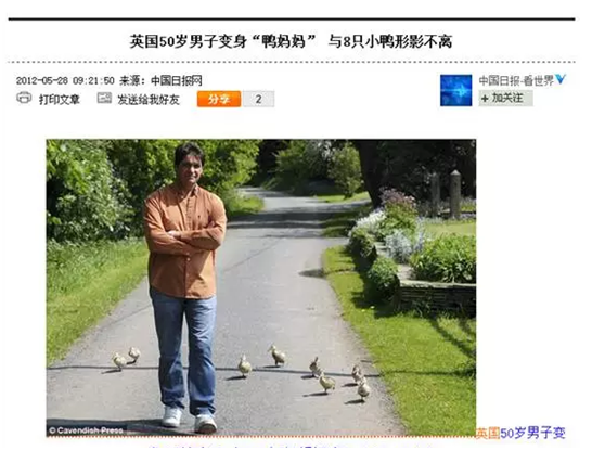 印刻現(xiàn)象是指初生不久的小動(dòng)物追逐它們最初看到的能活動(dòng)的生物,并對(duì)其產(chǎn)生依戀之情的現(xiàn)象。在雞、鴨、狗等小動(dòng)物身上表現(xiàn)最明顯,最有名的是“鴨子實(shí)驗(yàn)”。