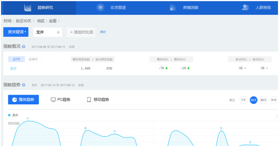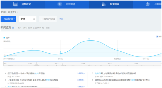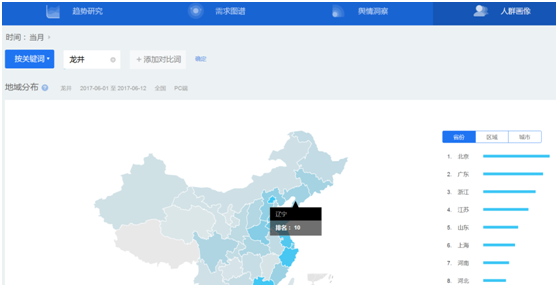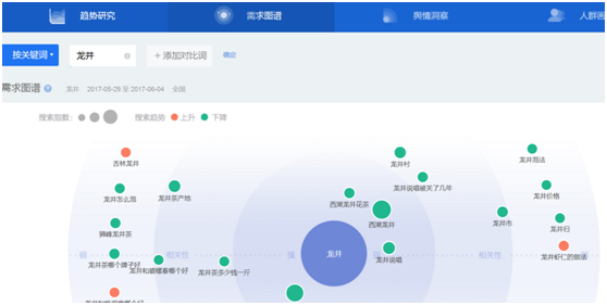 比如:如果想了解龍井茶近期的關注度、關注點及人群基本特性
